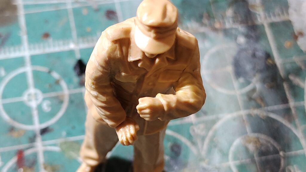 より早く完成させたい人は製作の早い段階で、フィギュアのポーズ変更までやっみて下さい。そうすれば、パテ盛り作業を車両組み立ての合間にやる事が出来るので、パテの乾燥待ちの時間が解消できるようになり、車両の組み立て終了と同時にフィギュアも完成させる事が可能になります。
