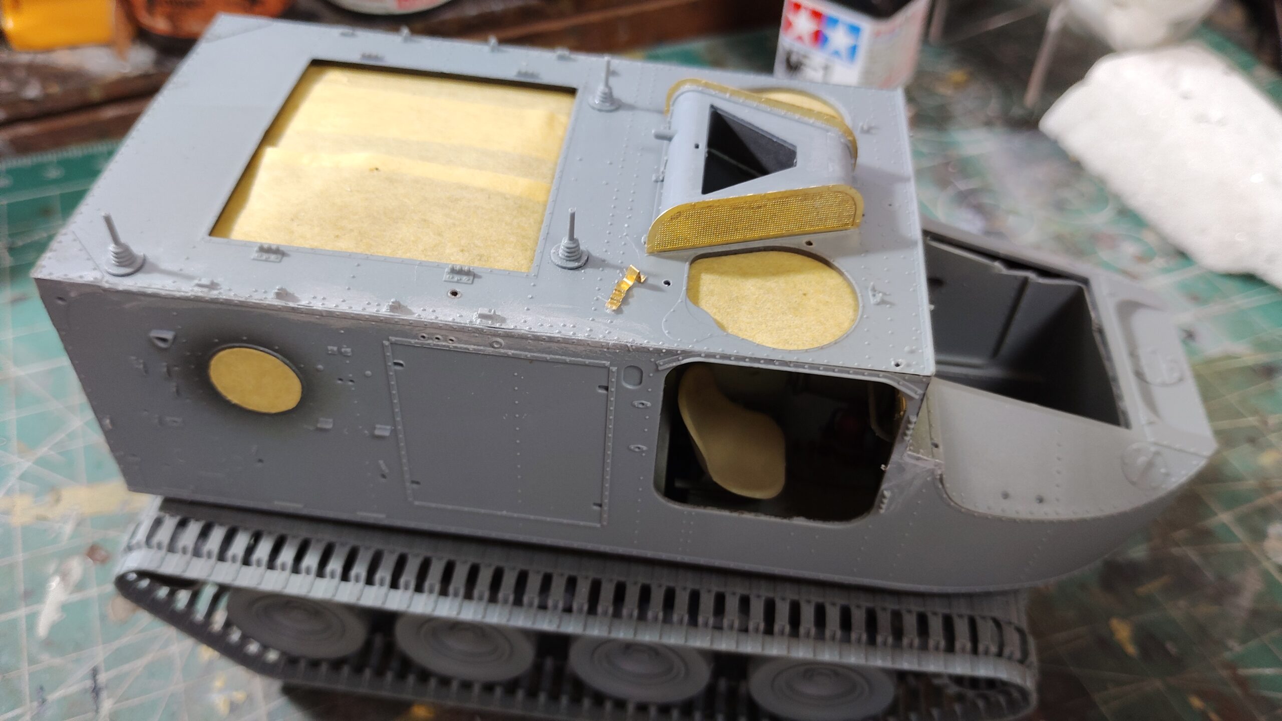 【初心者向け】装甲兵員輸送車両の製作方法(ゲッコーモデル 1/35 M76オッター前期型)~⑥車体の組み立てとマスキング編その2~