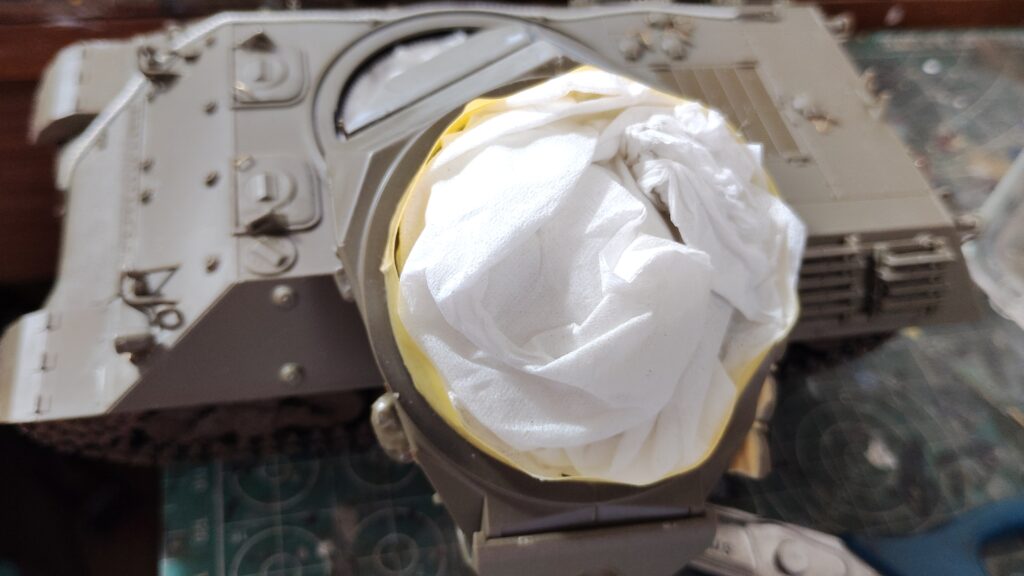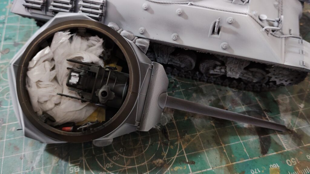 砲塔内部は細かい塗り分けも少なく車体色で塗装するので、砲弾だけ別にして後で取り付けるようにすれば、組立て後の塗装もそれほど難しくはないと思います。