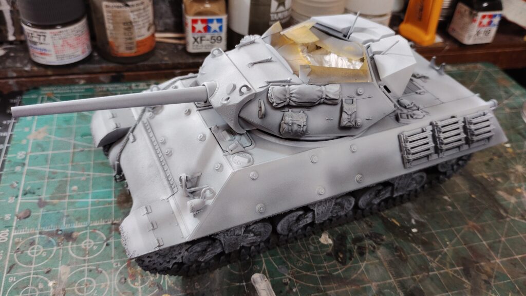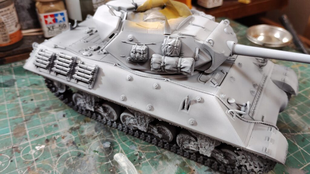 【初心者向け】簡単!タミヤテクスチャーペイントを使った泥汚れの製作方法(タミヤ 1/35 M10駆逐戦車)~⑨下地塗装編~