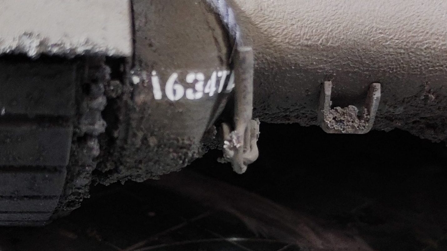 M10のキャタピラは中央部分の四角いブロックがゴム製で、両端の連結部分は金属製になります。中央のゴム部分だけを、写真2、3のようにラバーブラックで塗装します。ここも塗り分けを気にしないで、付着させた泥汚れはラバーブラックで塗りつぶします。