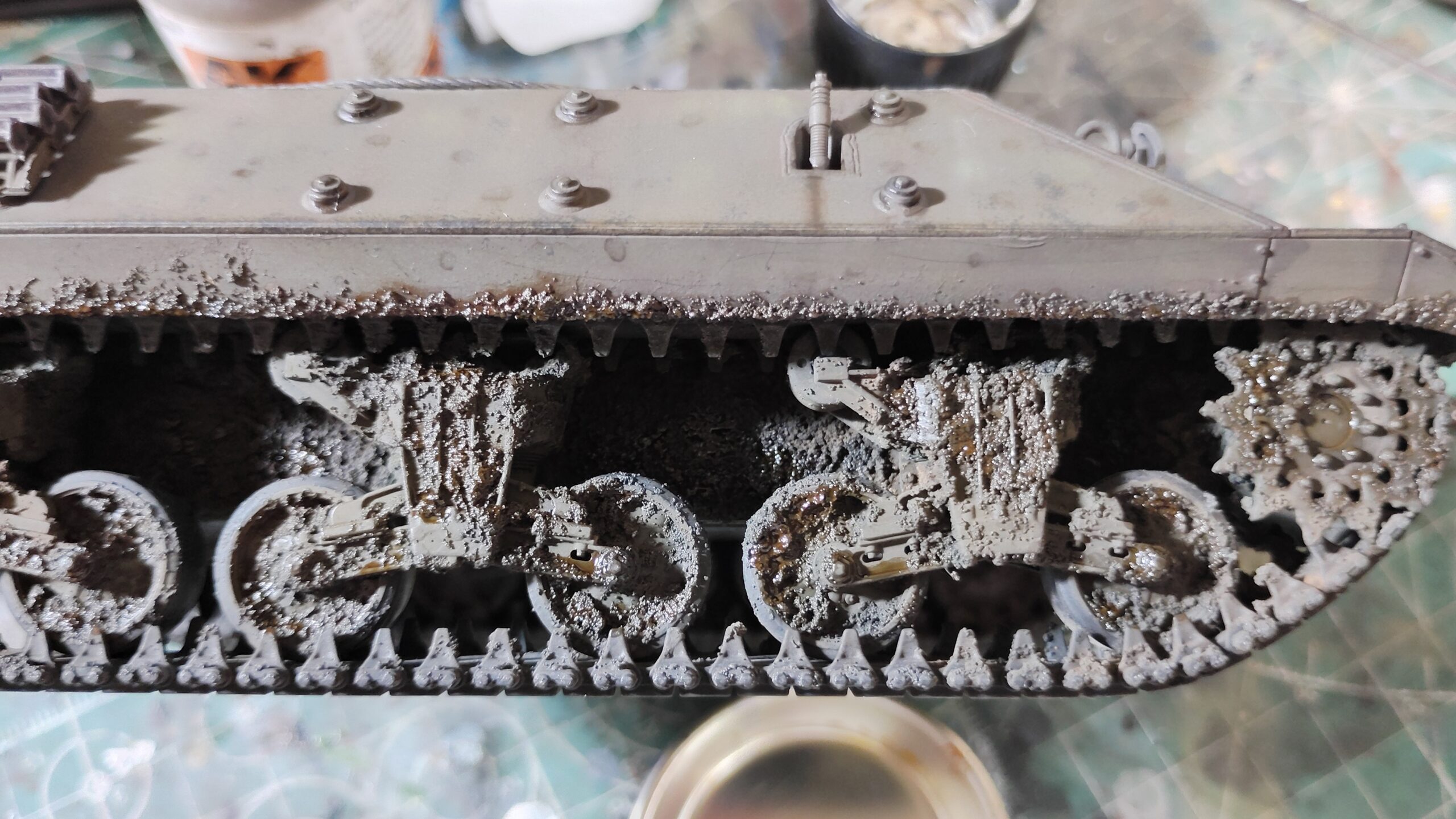 【初心者向け】簡単!タミヤテクスチャーペイントを使った泥汚れの製作方法(タミヤ 1/35 M10駆逐戦車)~⑭汚し塗装編その3~
