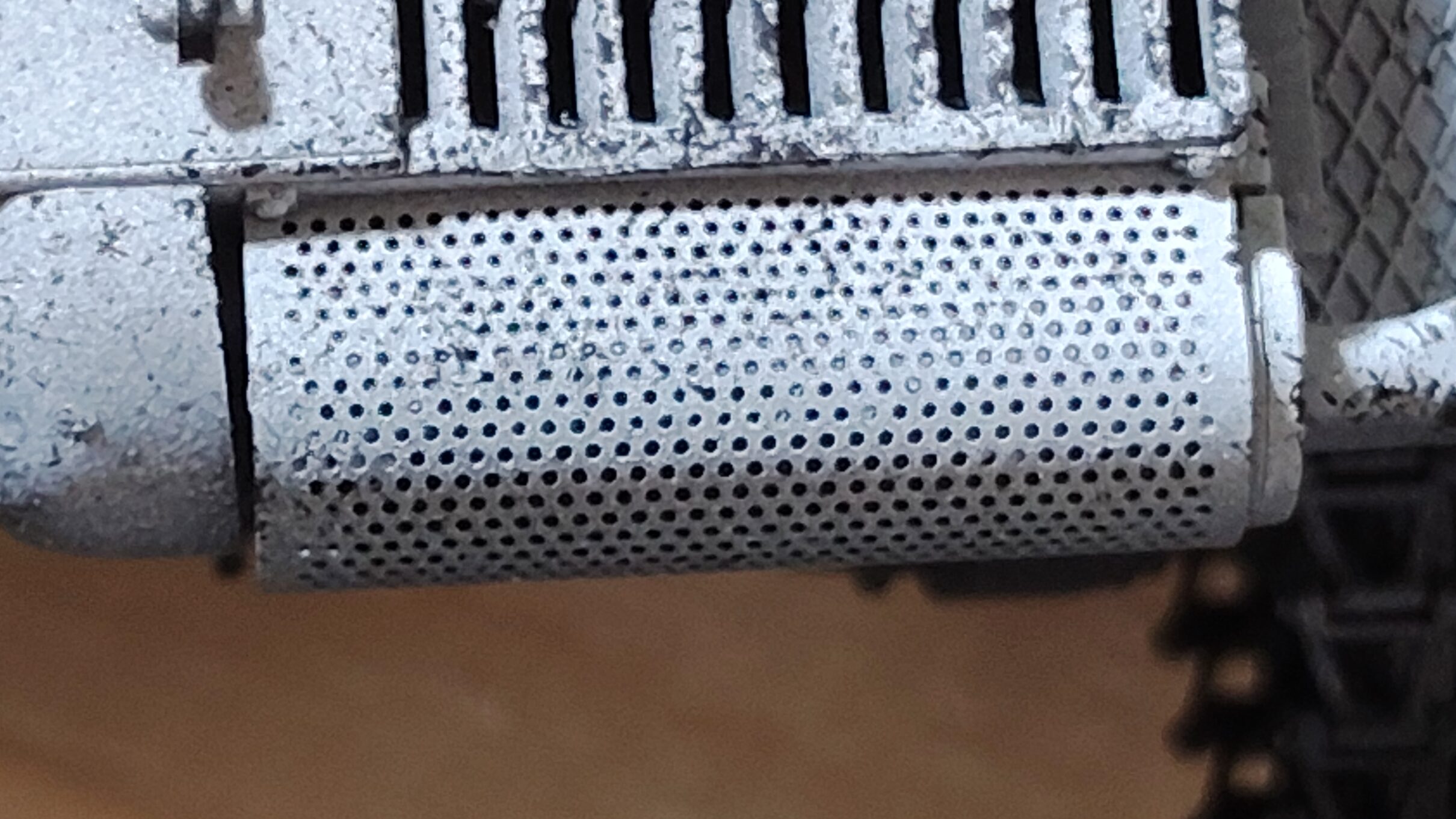 メタルプライマーは粘性が高いので、放熱板などに塗ると穴が塞がってしまう場合があります。メタルプライマーは透明なので、塗った時には塞がった穴があるか確認するのは難しいですが、写真14のように下地塗装を終えた段階だと、塞がった穴を確認する事ができます。