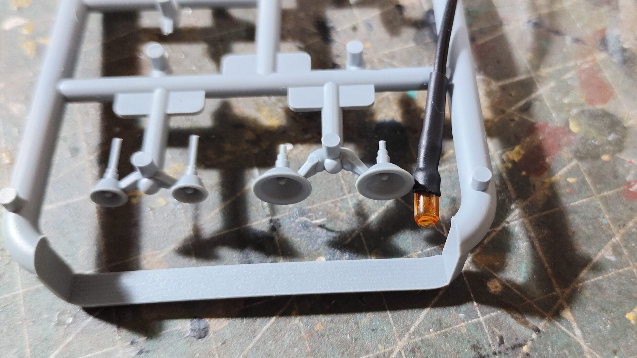 写真6の状態で傘を被せると、電球には見えそうなのですがコードが長すぎて1/35スケールだとかなり電球が下がった状態になってしまいます。1/24スケールや1/12スケールなどなら問題ないと思うので、スケールに合わせて判断して下さい。