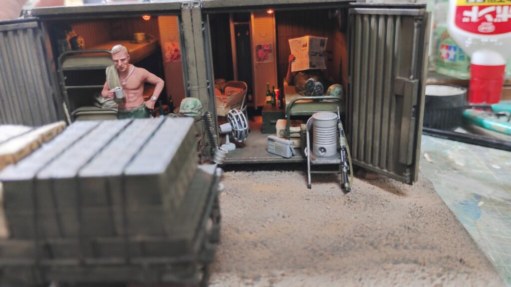 【初心者向け】ムギ球を使用して模型を光らせる!(ゲッコーモデル 1/35 コンテナ兵舎)~⑬小物の塗装と配置編その2~