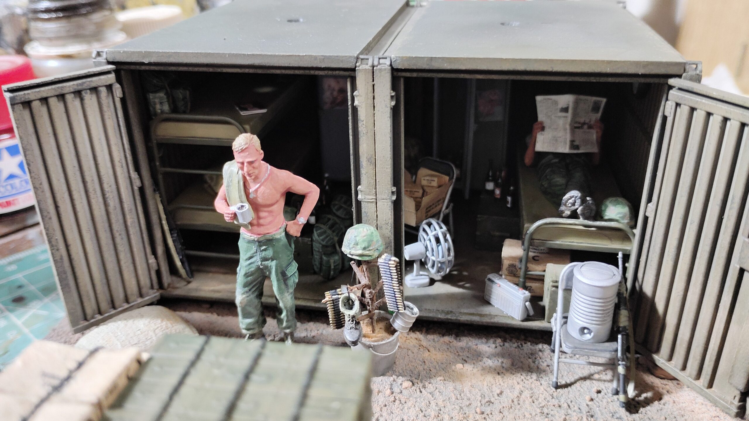 【初心者向け】ムギ球を使用して模型を光らせる!(ゲッコーモデル 1/35 コンテナ兵舎)~⑭仕上げ作業編~