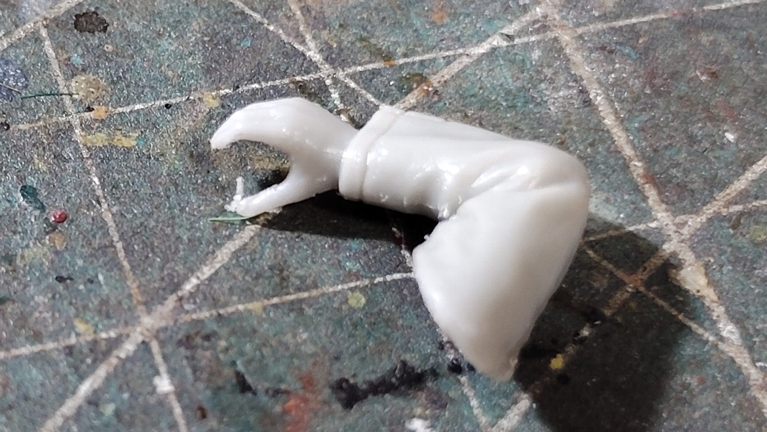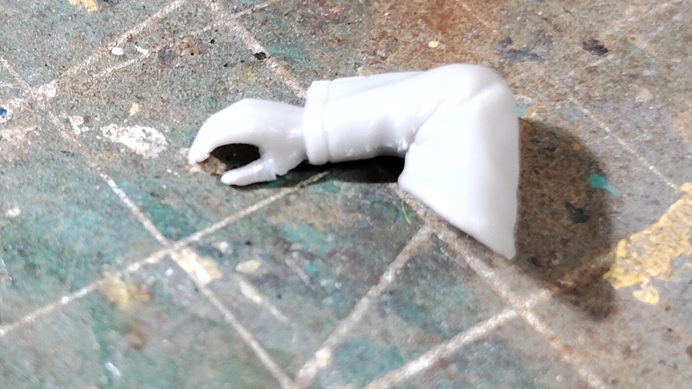 他フィギュアから伸ばした状態の腕を流用してもよいのですが、ハッチを掴む手首の状態が気に入ったので、関節を伸ばす事にします。