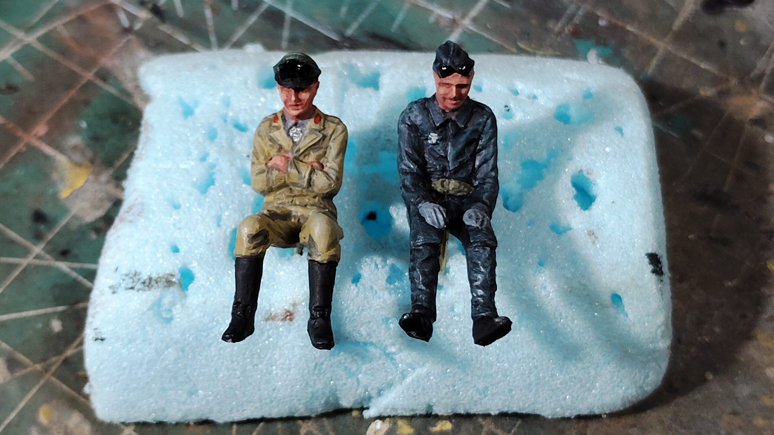 塗装が終了したらフィギュアを座席に接着します。天板を取り付けるとコクピット内部の修正はできなくなります。塗装中にフィギュアが外れないように、しっかり接着するようにして下さい。