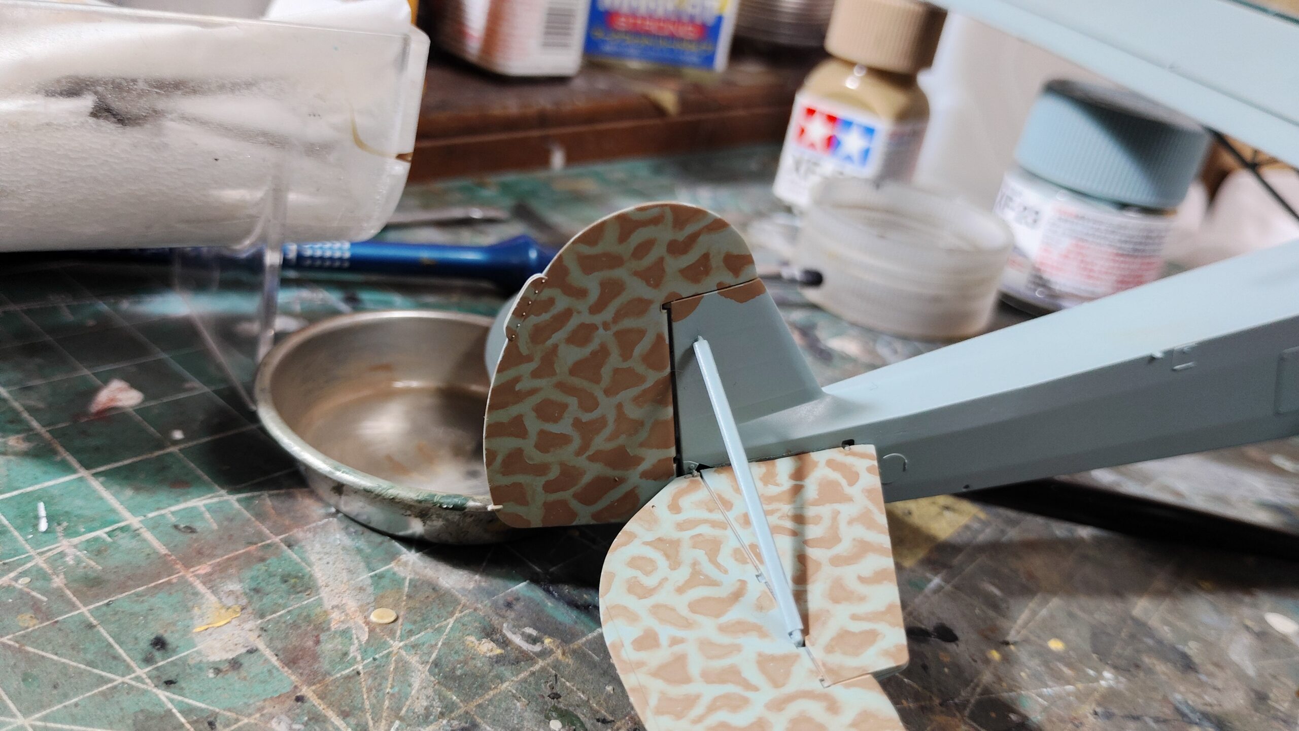 【初心者向け】簡単!筆塗りで行うまだら迷彩(タミヤ 1/48 フィーゼラー Fi156C シュトルヒ)~⑤まだら迷彩塗装編その1~