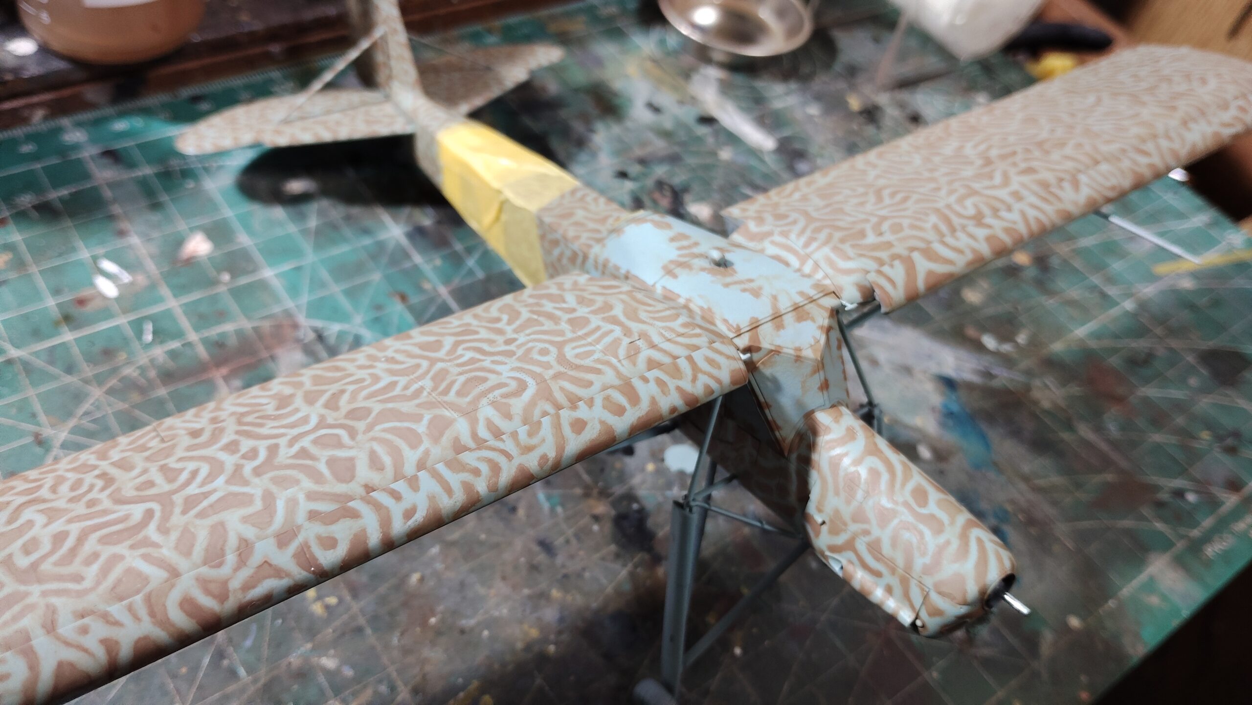 【初心者向け】簡単!筆塗りで行うまだら迷彩(タミヤ 1/48 フィーゼラー Fi156C シュトルヒ)~⑥まだら迷彩塗装編その2~