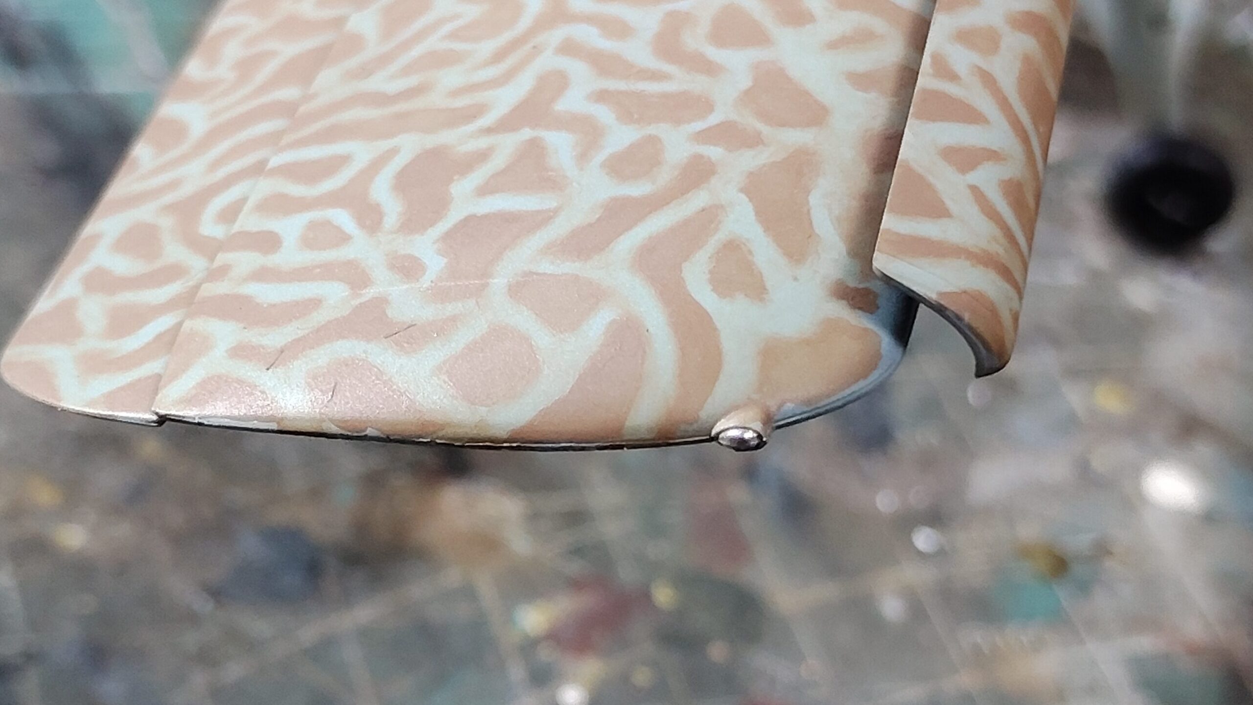 余白部分の太さを均一にすれば、統一感のあるまだら模様が表現できます。迷彩柄を塗って拭き取りを行うので、手間はかかりますが特別な技術は必要ないです。
