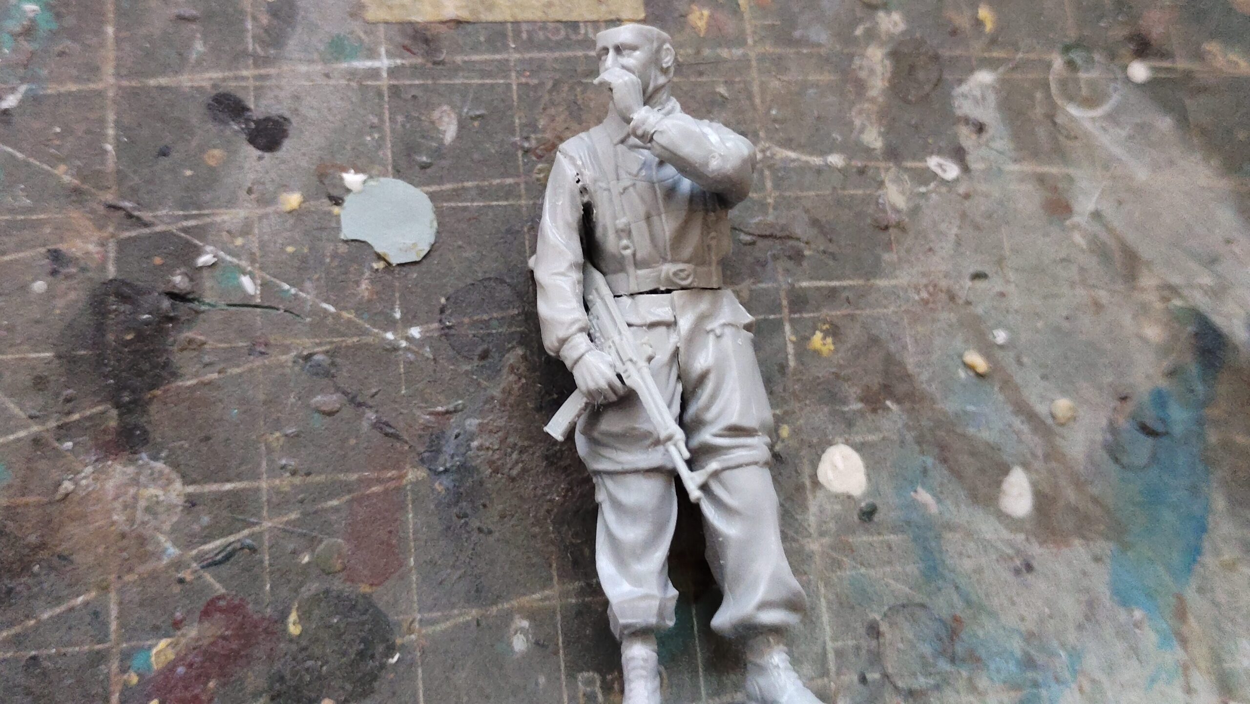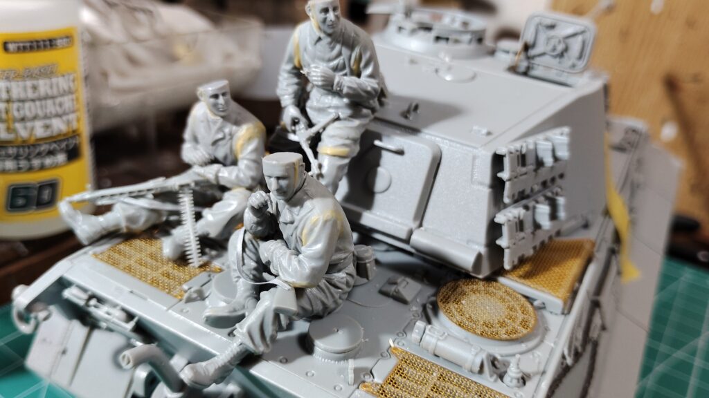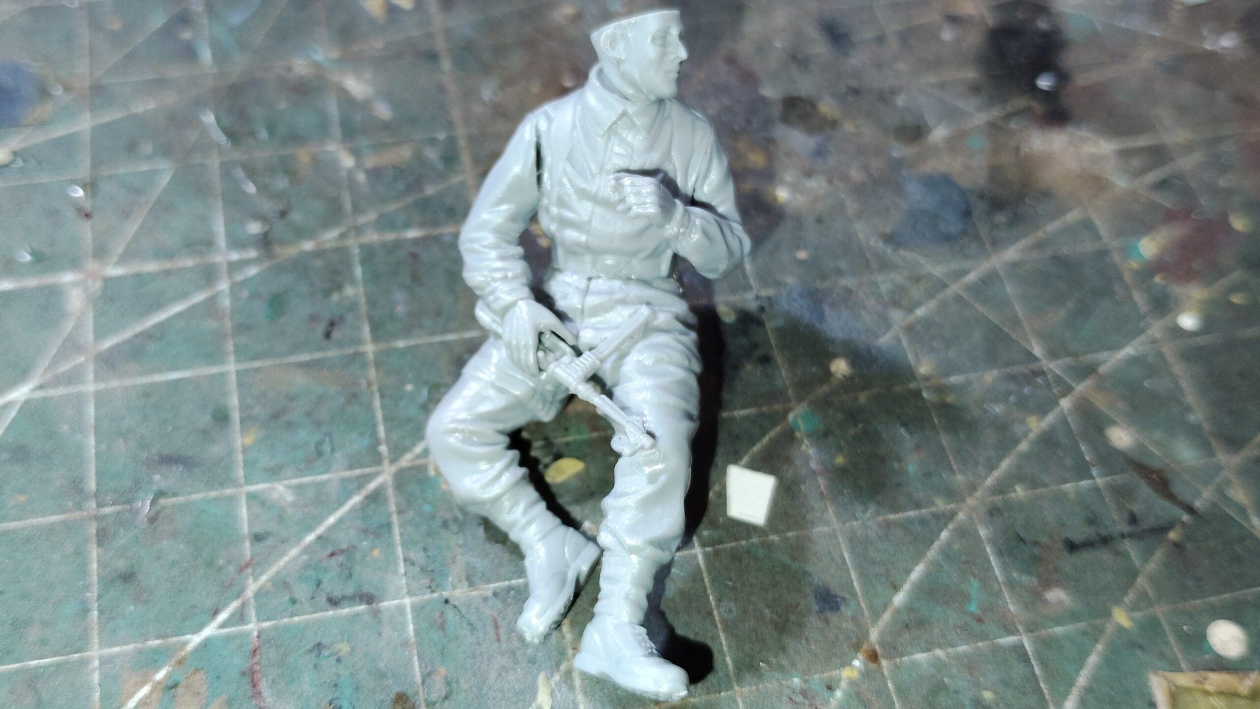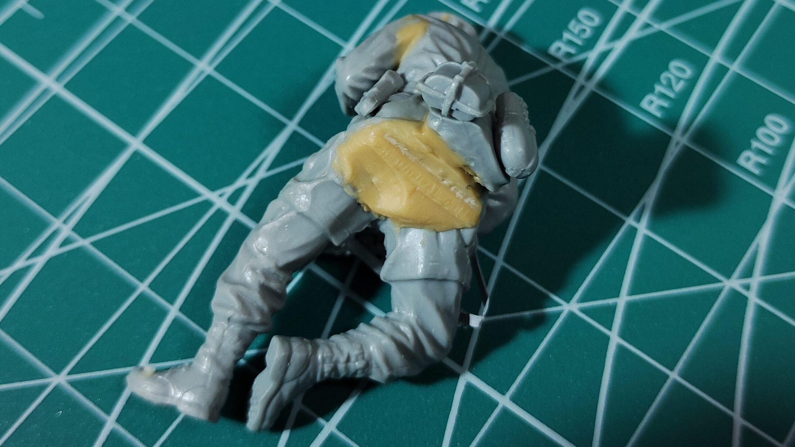 砲塔に腰かける写真1のフィギュアにパテ盛り作業を行います。