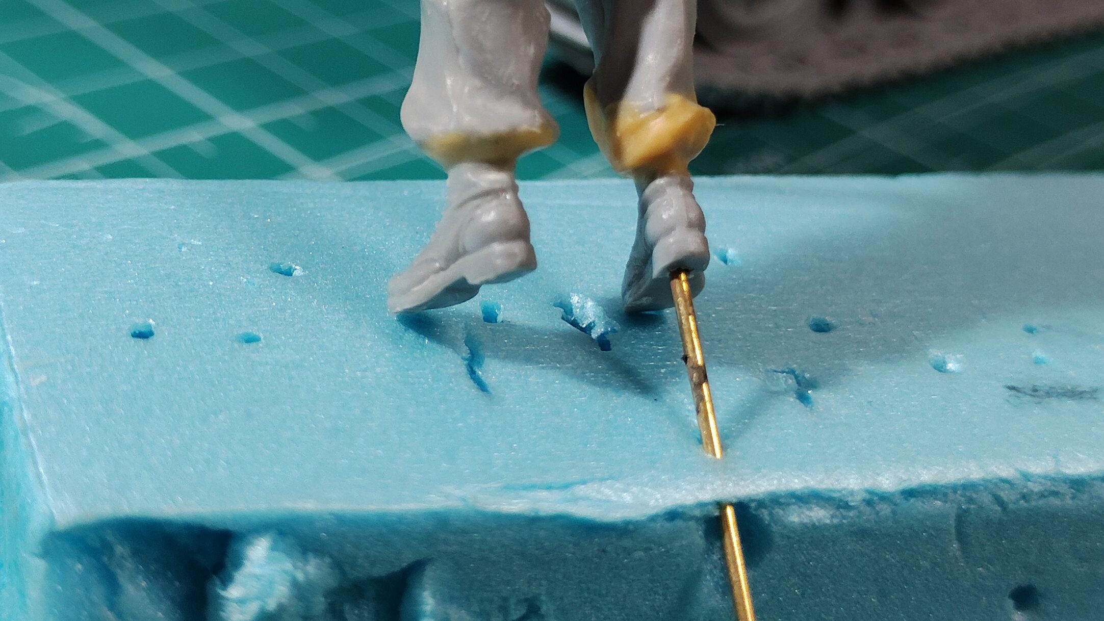 足元はブーツを切断して角度を調節したので、ブーツの接着面が目立たないようにパテを盛って裾部分を製作しています。