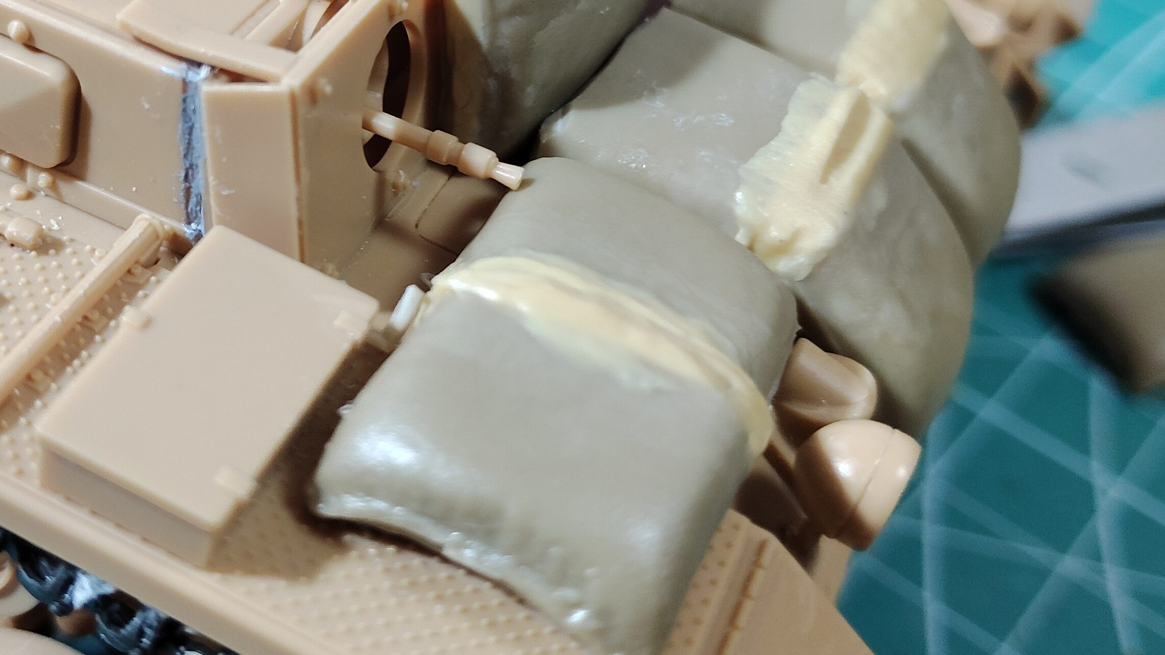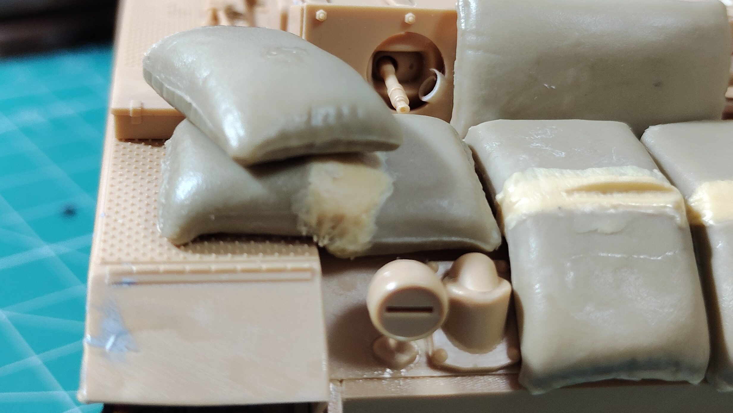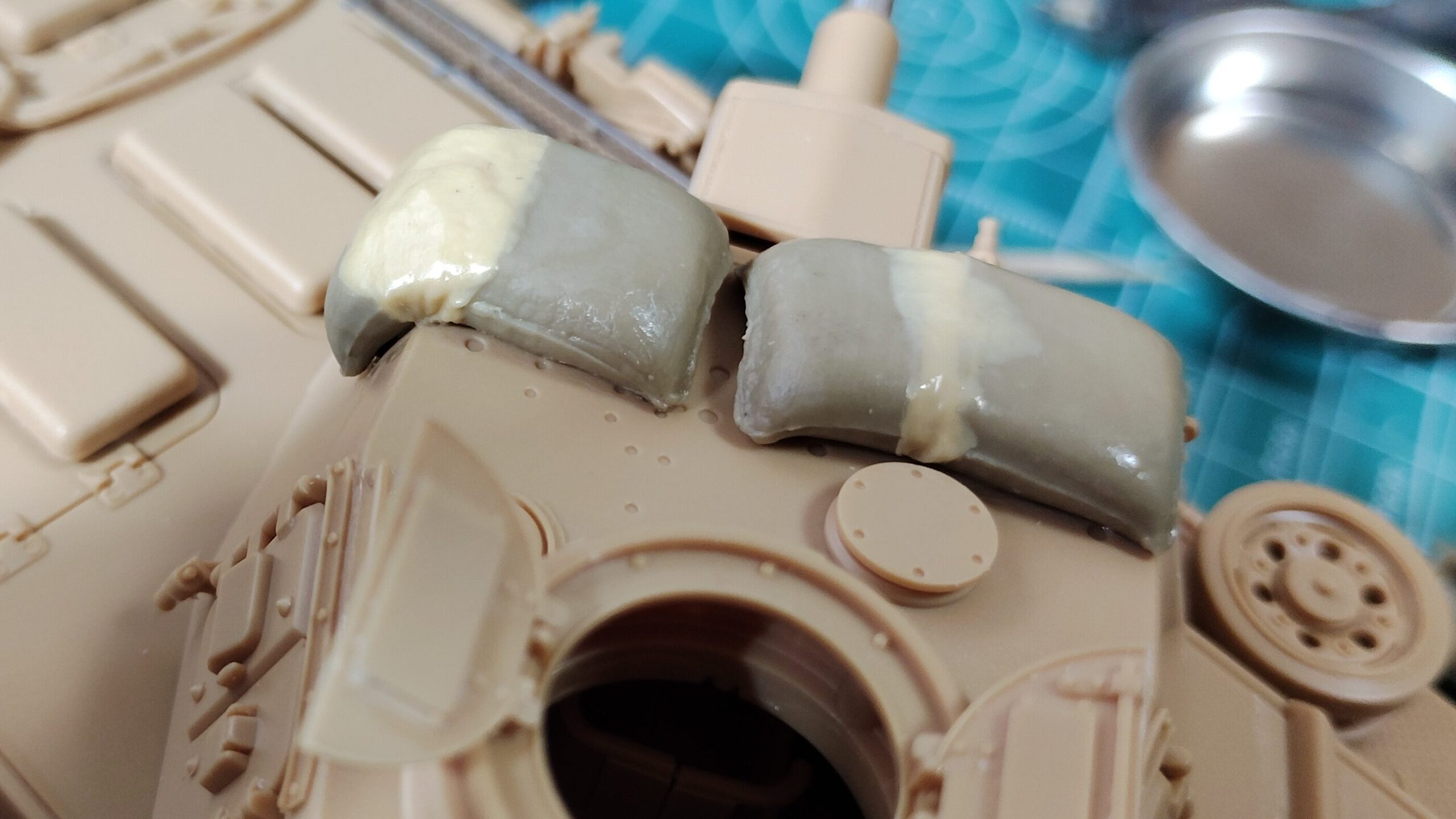 =🐣砲塔上面土嚢のパテ盛り作業=