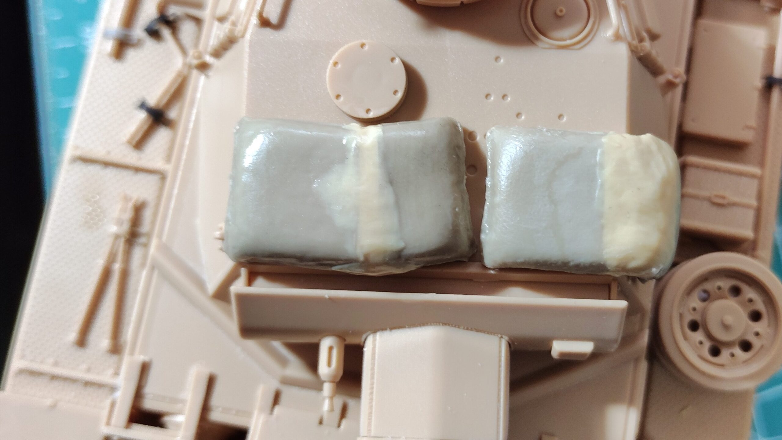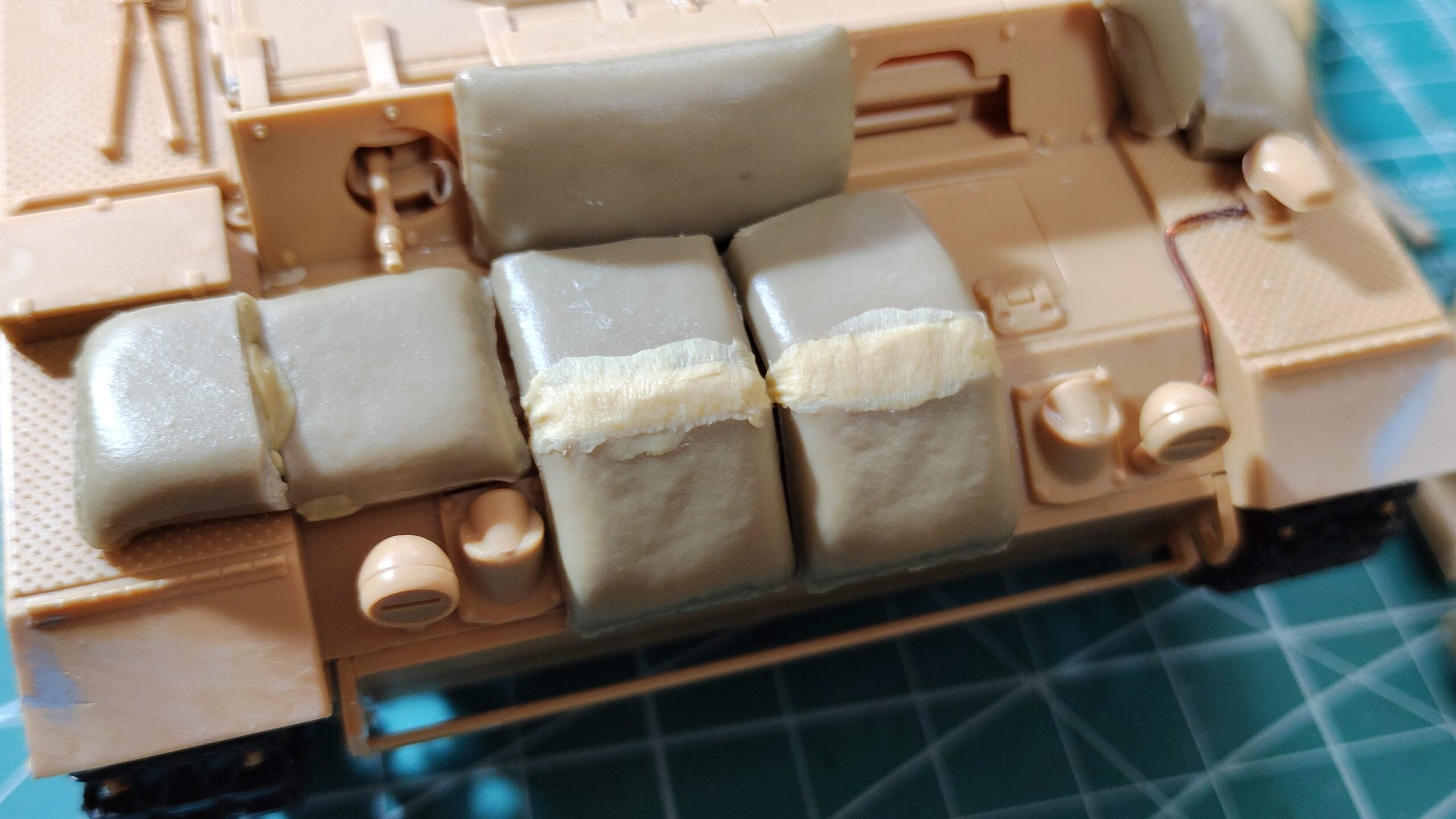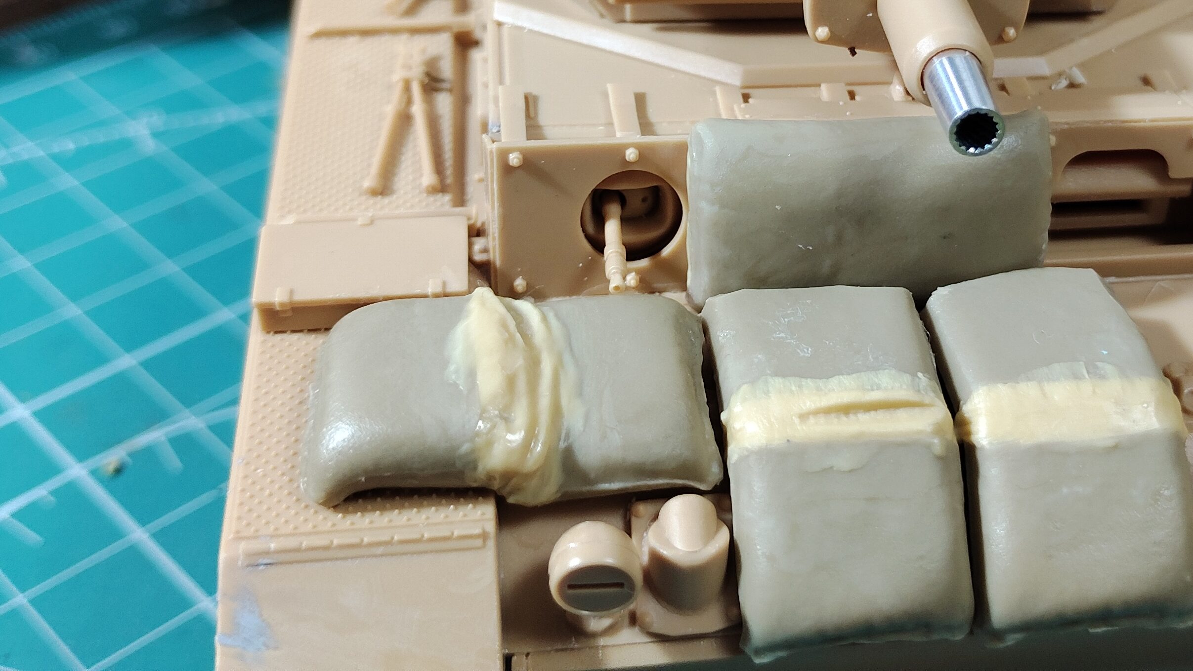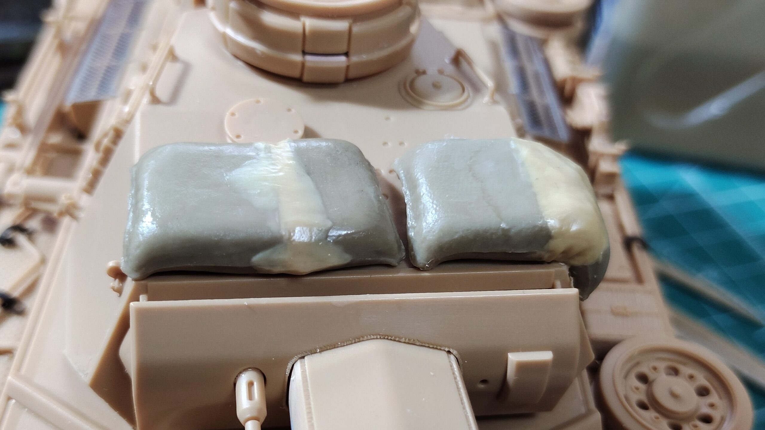 =🐣砲塔上面土嚢のパテ盛り作業=