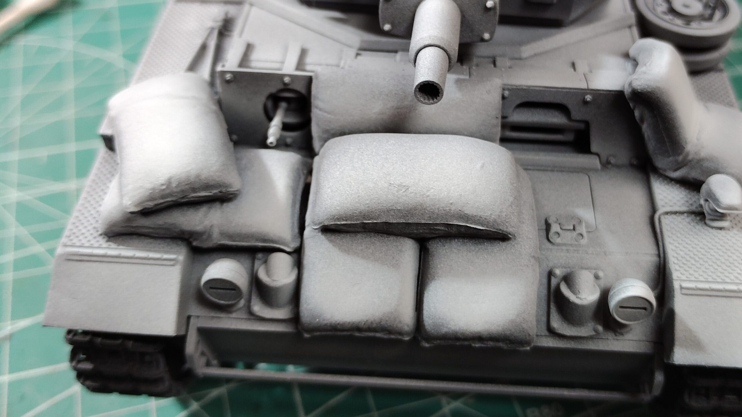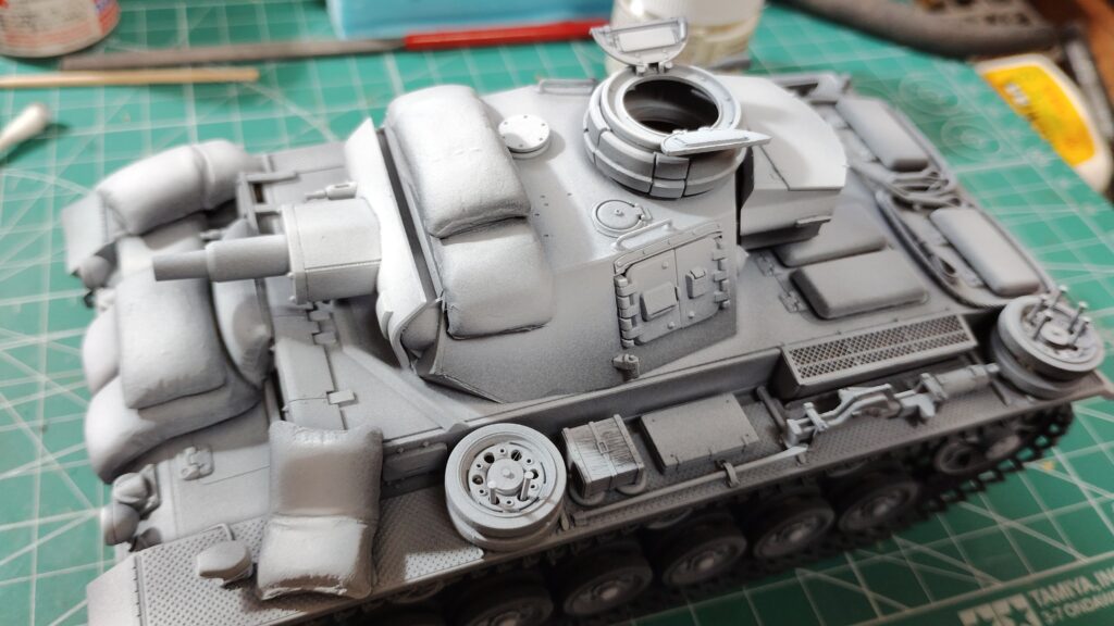 【初心者向け】車体に合わせたタミヤ土のうセットの改造方法(タミヤ 1/35 Ⅲ号戦車N型)~⑨下地塗装編~