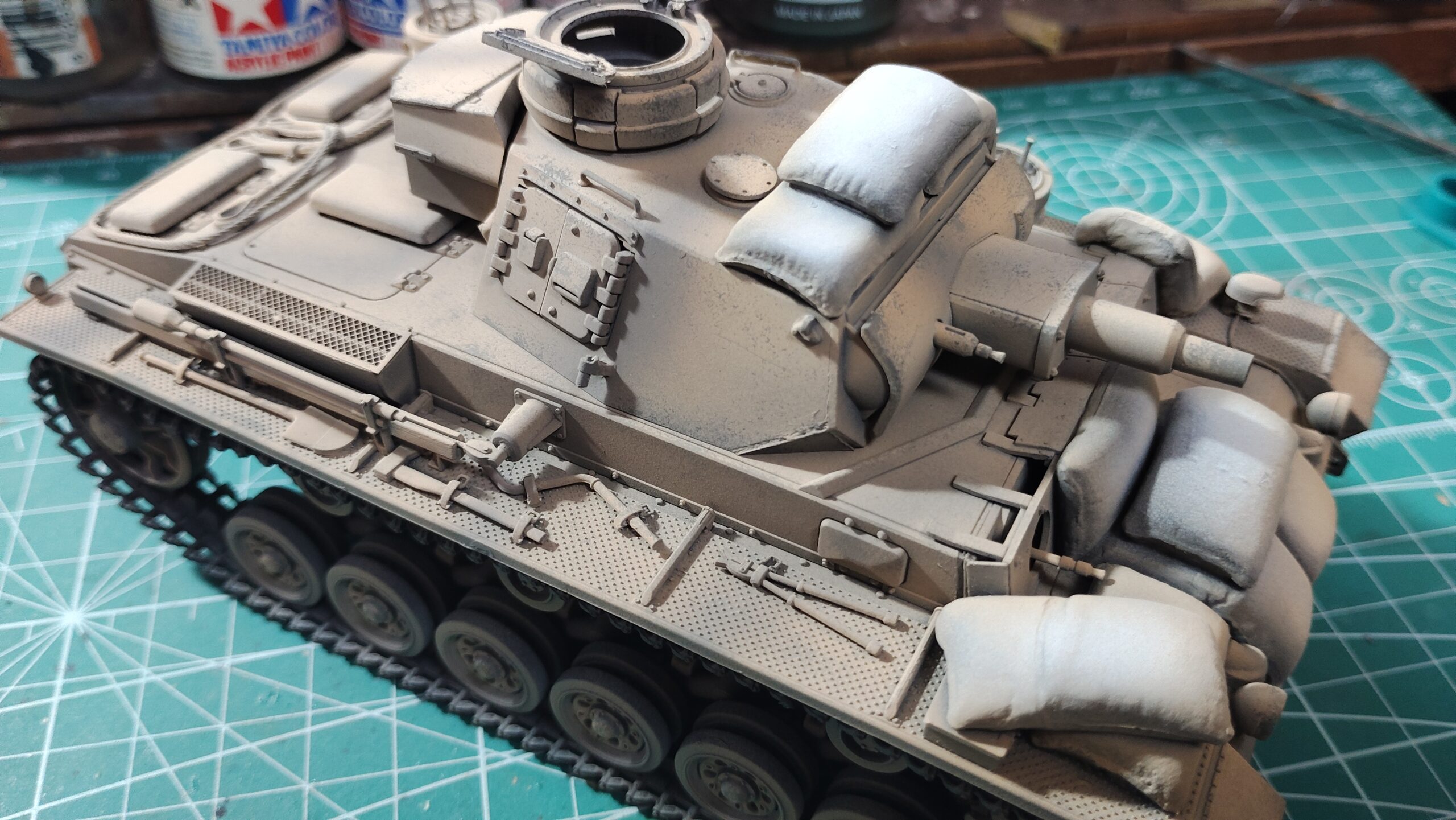 【初心者向け】車体に合わせたタミヤ土のうセットの改造方法(タミヤ 1/35 Ⅲ号戦車N型)~⑩基本塗装編~