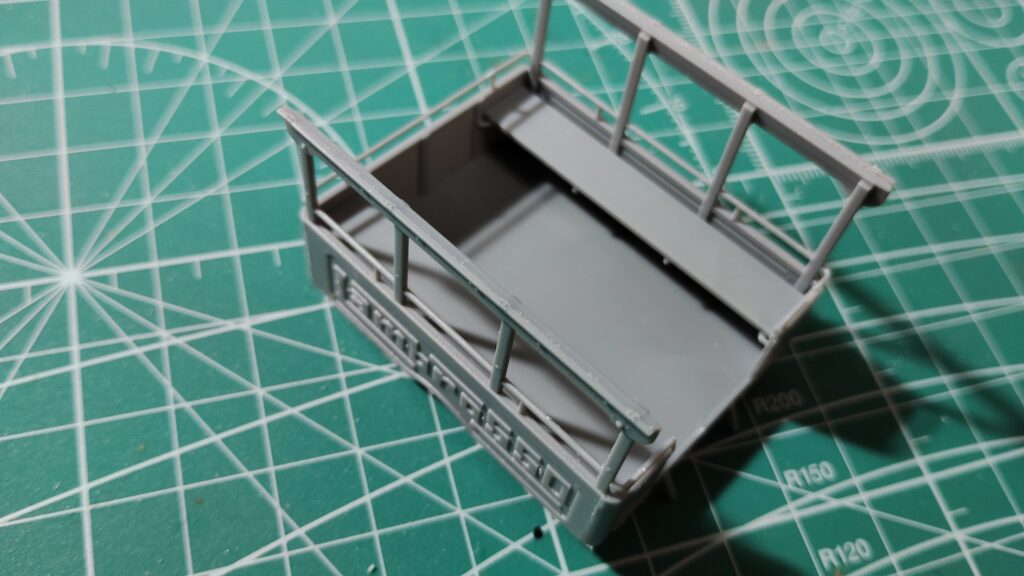 組み立てを終えた状態が写真9になります。塗装を考えて荷台と天井パーツを分割しています。塗装は地面の製作が終了してから行います。