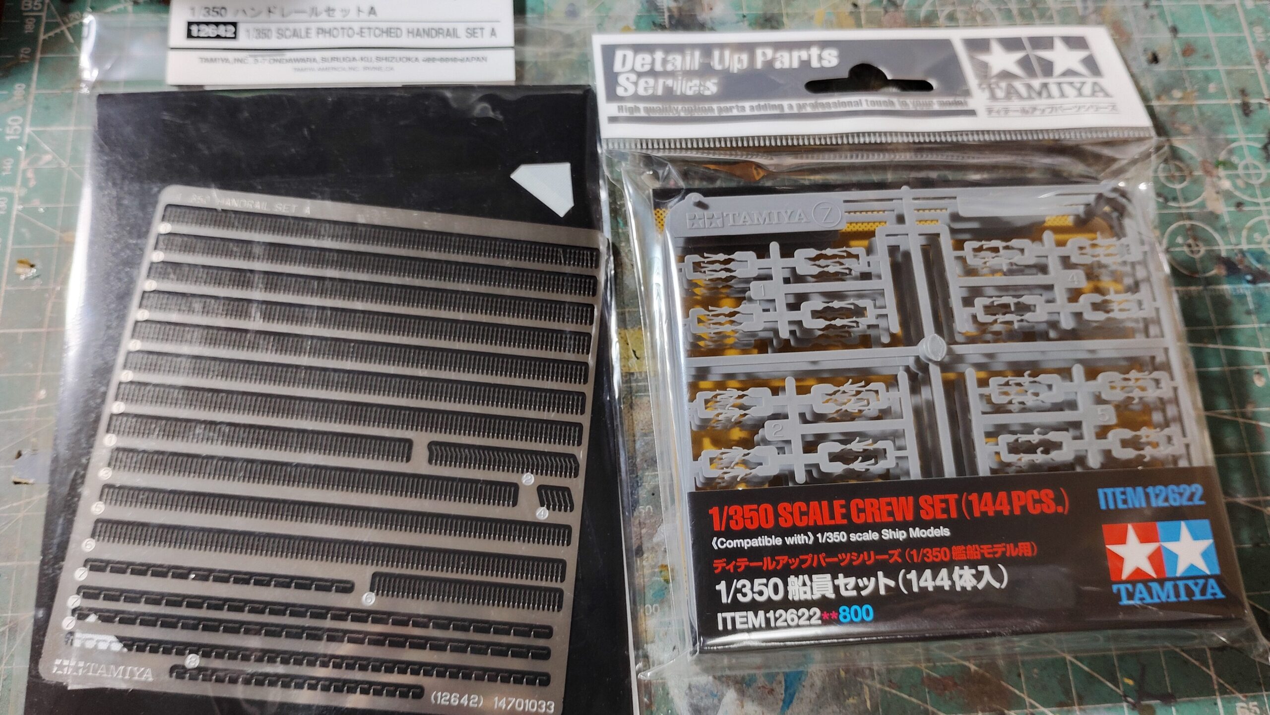 今回はタミヤから発売されている写真2のハンドレールセットと船員セットを使用します。