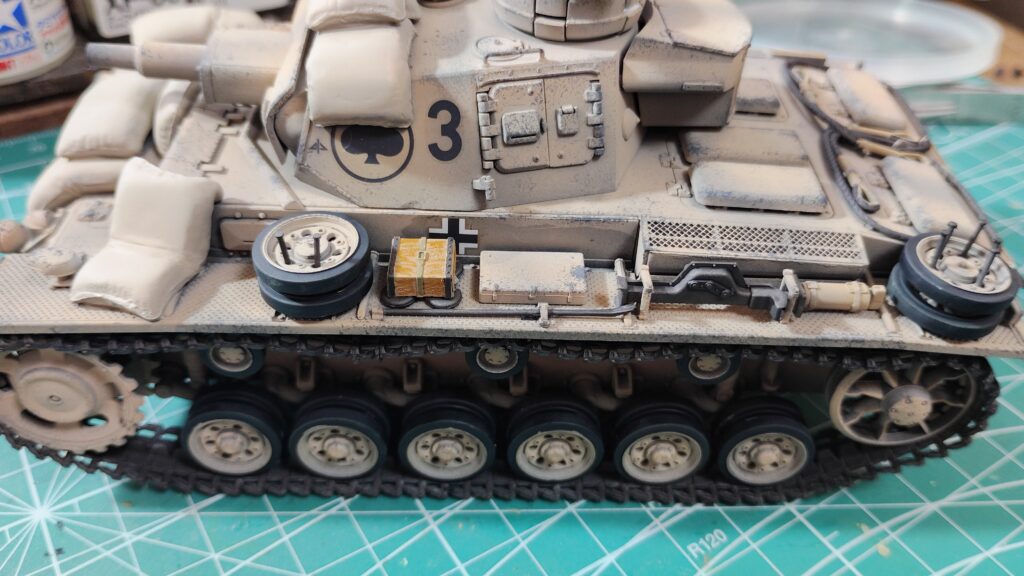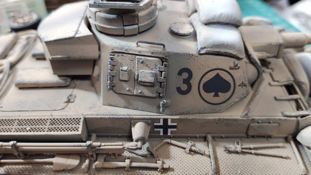 アフリカ戦線のドイツ戦車は白黒写真だと単色にも見えますが、よく見るとうっすら影のように色の違いがある車両が多いです。影にしては不自然な箇所に付いている車両が多いので、薄い迷彩塗装が施されていると思われます。今回はうっすら影のように見える迷彩塗装を再現してみたいと思います。
