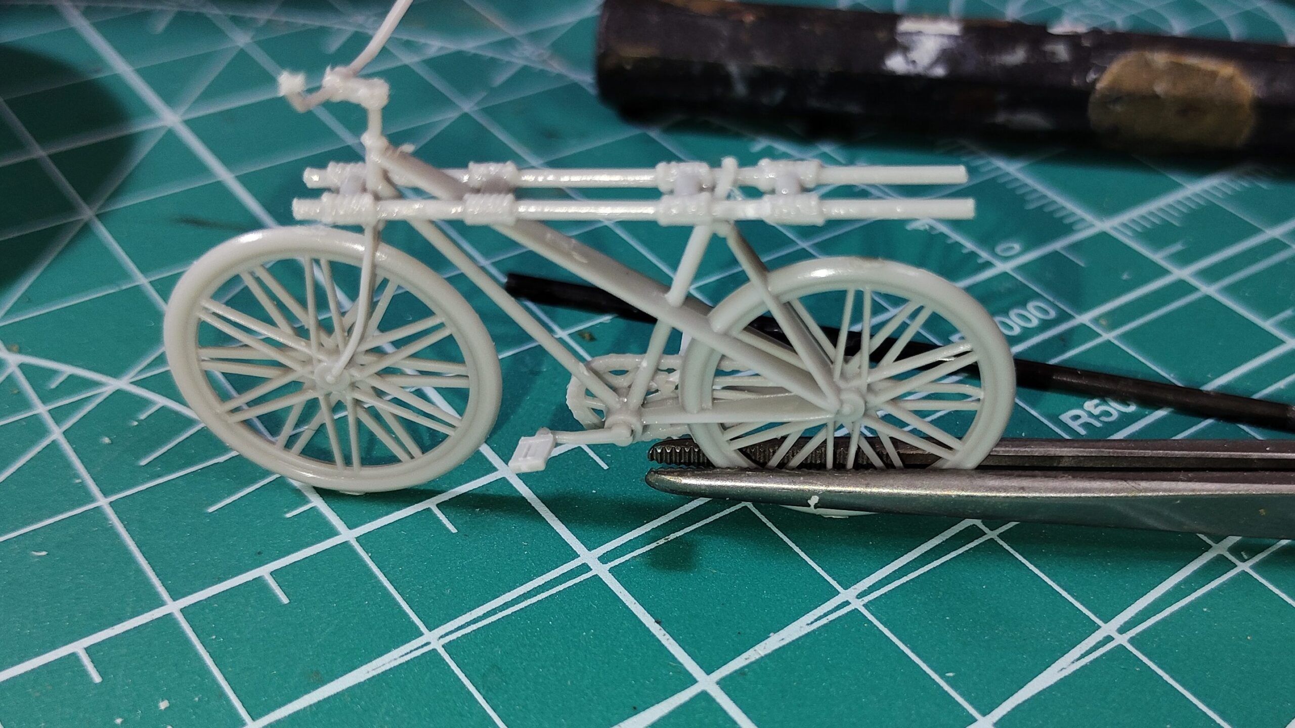 自転車を引く女性兵士は、写真4のように握り手にハンドルがモールドされた状態になっています。そのため、自転車ハンドルの位置を握り手と合わせる必要があります。