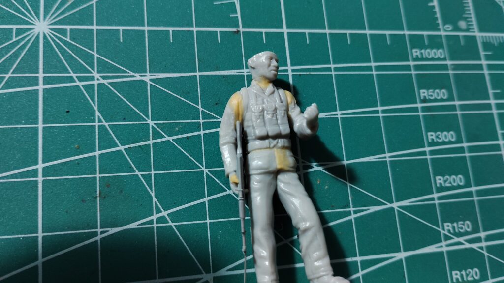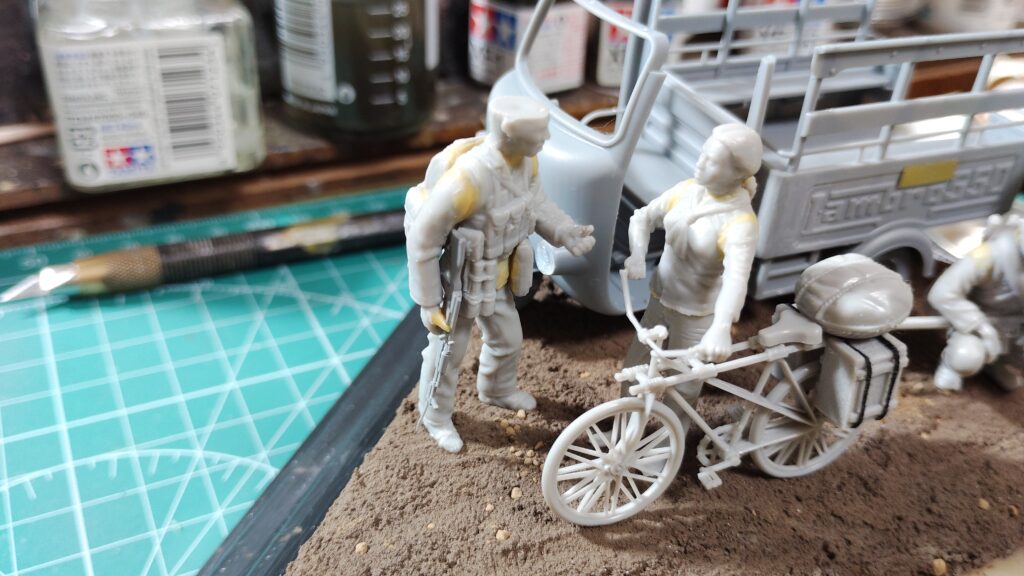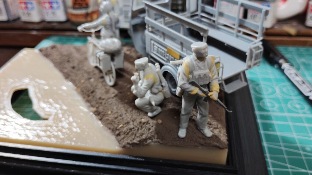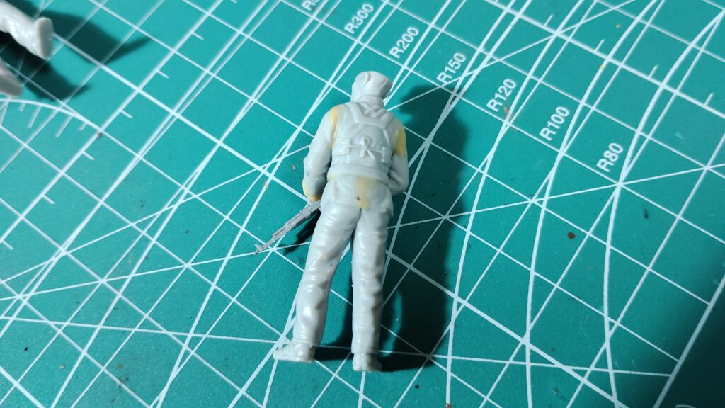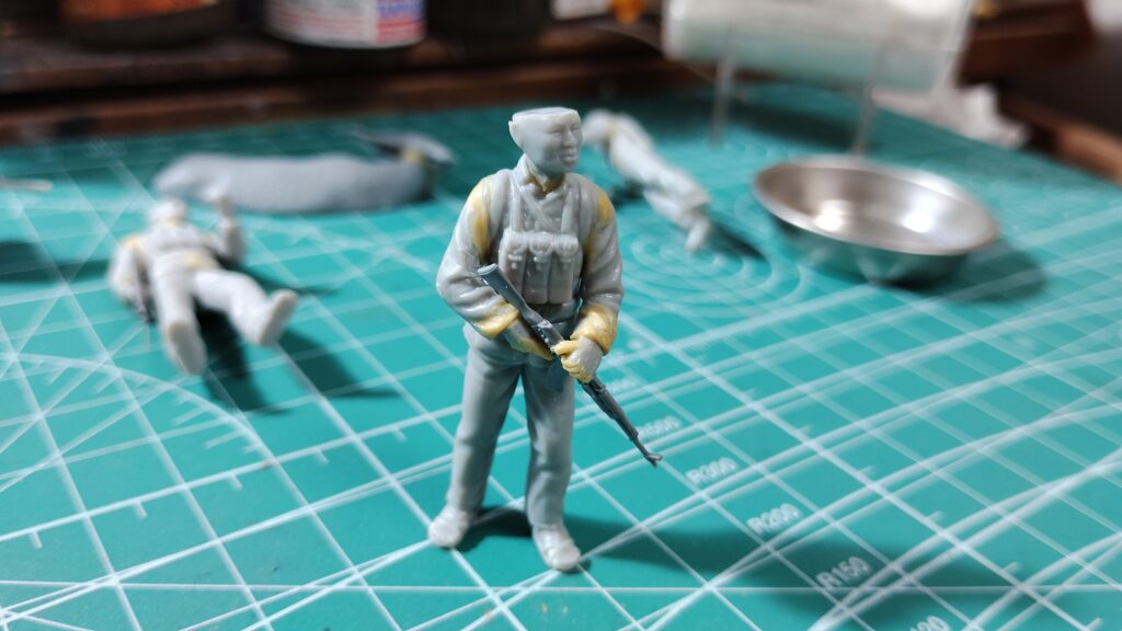 座り込む兵士はとくに問題なく製作する事ができました。ちょっと拍子抜けしてしまう感じもありますが、古いフィギュアでも隙間を埋めるだけで十分なフィギュアもあるので、そういった際は運が良かったと思って素直に隙間埋めだけ行うようにして下さい。