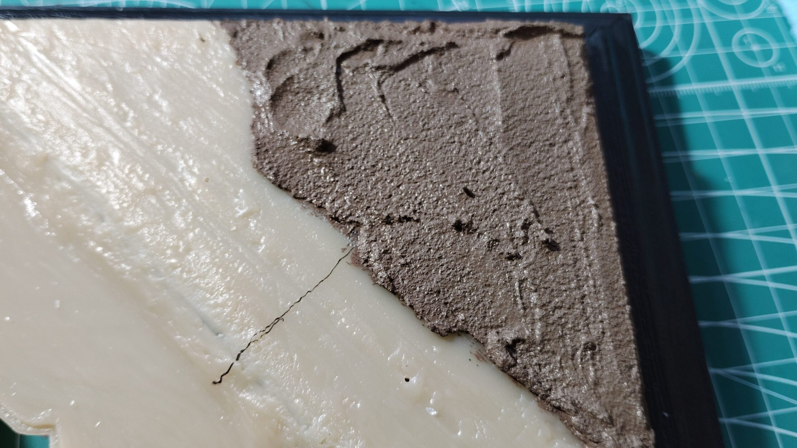 表面に毛のモールドがあるので、パテを盛った部分に周囲のモールドと合わせるようにしてナイフで毛のモールドを加えていきます。